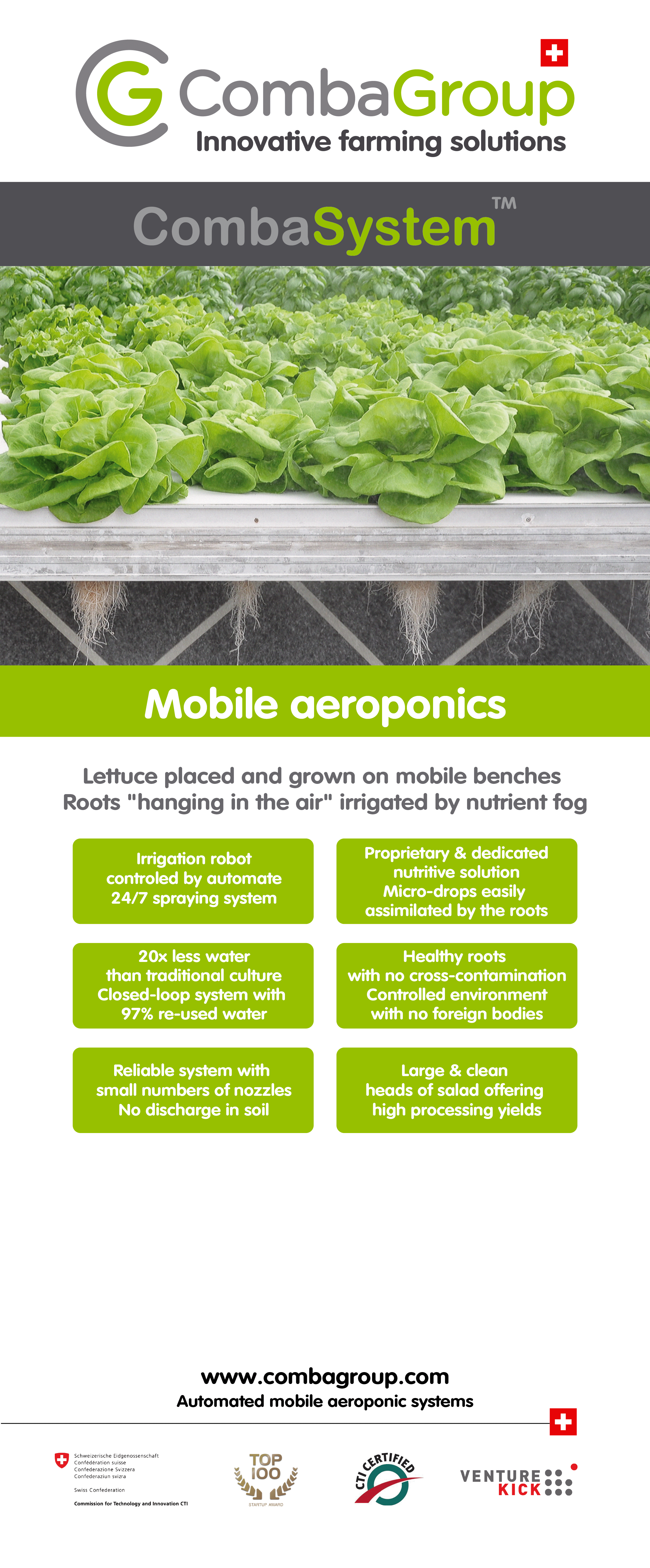From a project that started in 2011 in Switzerland, CleanGreens has developed an innovative greenhouse technology to grow salads locally all year long using 90% less water, 90% less space and reducing carbon footprint by 2 compared to traditional ways of growing. CleanGreens targets the fresh cut (ready to eat, packaged) salad market, a business worth over 8 billion Euros a year in Europe & the USA, and where 2/3s of the salad produced for it is wasted, one of the highest levels in the food industry.