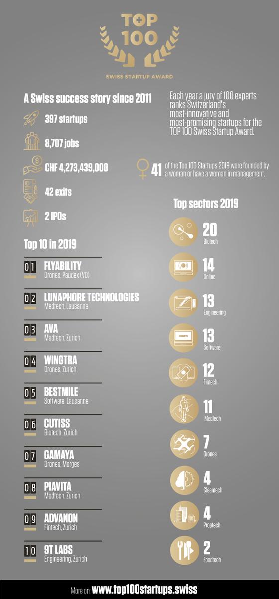 Discover the most promising Swiss startups in our TOP 100 infographic for 2019
