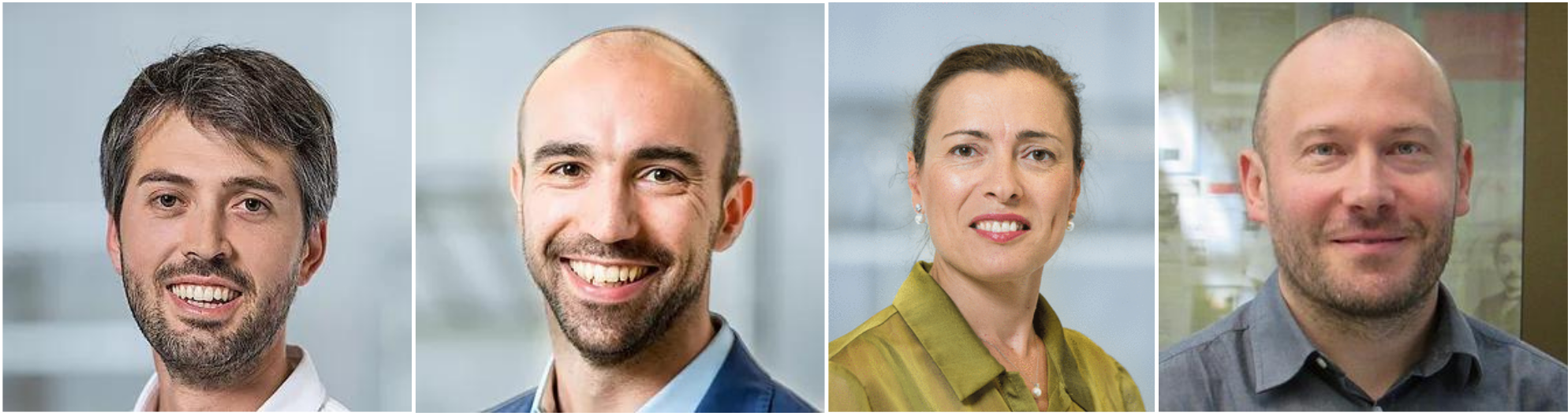 The Hylomorph founding and management team (from left to right): Simone Bottan (CEO), Francesco Robotti (COO), Sonia Schmocker (Chief Regulatory and Quality Officer), and Aldo Ferrari (CSO)