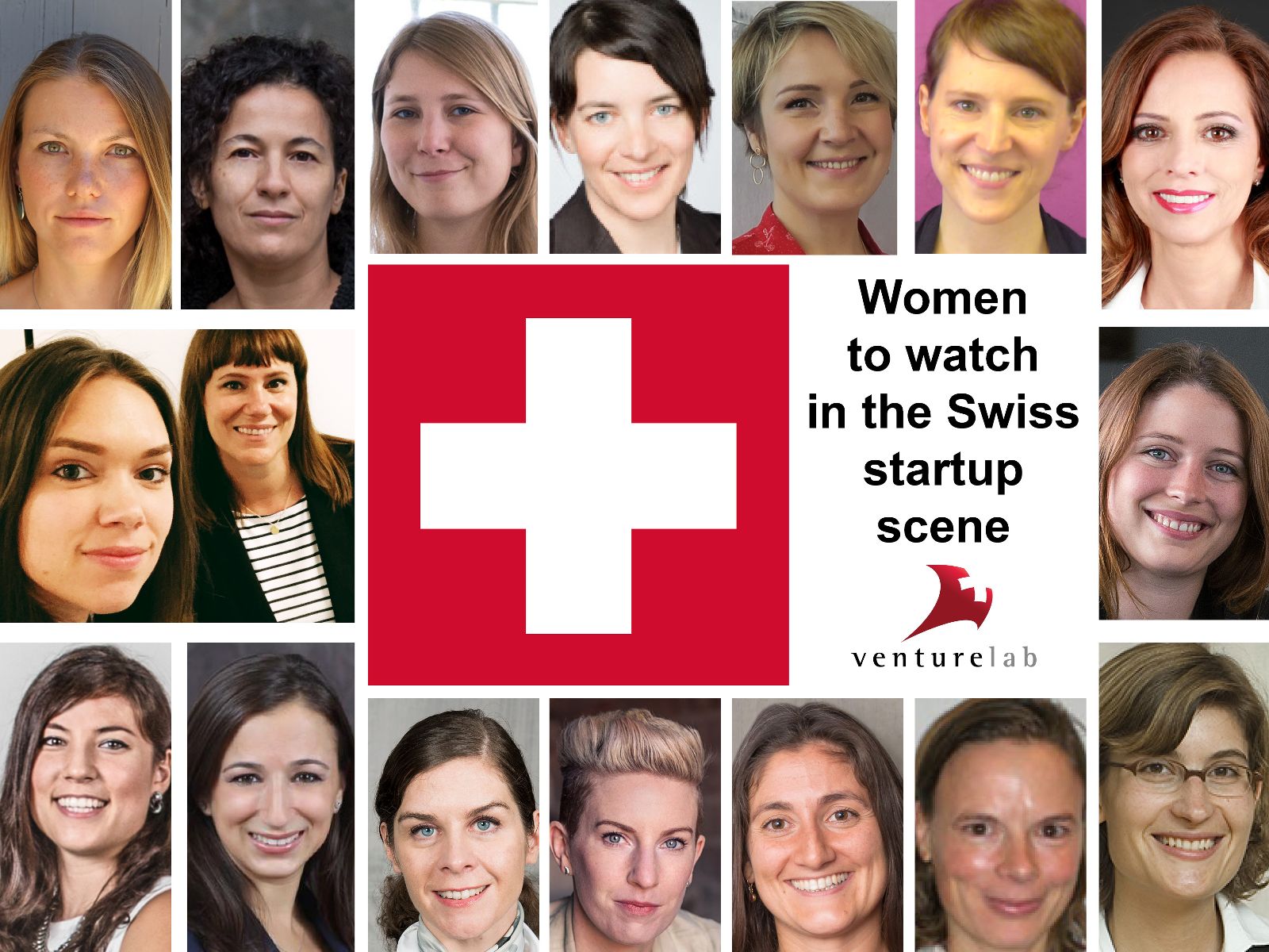Clockwise from top left: Olga Dubey, AgroSustain; Madiha Derouazi, Amal Therapeutics; Lea von Bidder, Ava; Giovanna Davatz, Arktis Radiation Detectors; Eugenia Balysheva, Dotphoton; Sandra Tobler, Futurae; Isabelle Ohnemus, Eyefitu; Séverine Chardonnens, IDUN; Corinne John, Redbiotec; Bettina Ernst, Preclin; Sabrina Badir, Pregnolia; Dorina Thiess, Piavita; Sandra Neumann, Peripal; Mona el Isa, Melonport; Deborah Heintze, Lunaphore; Aike Festini & Maite Mihm, Luckabox.