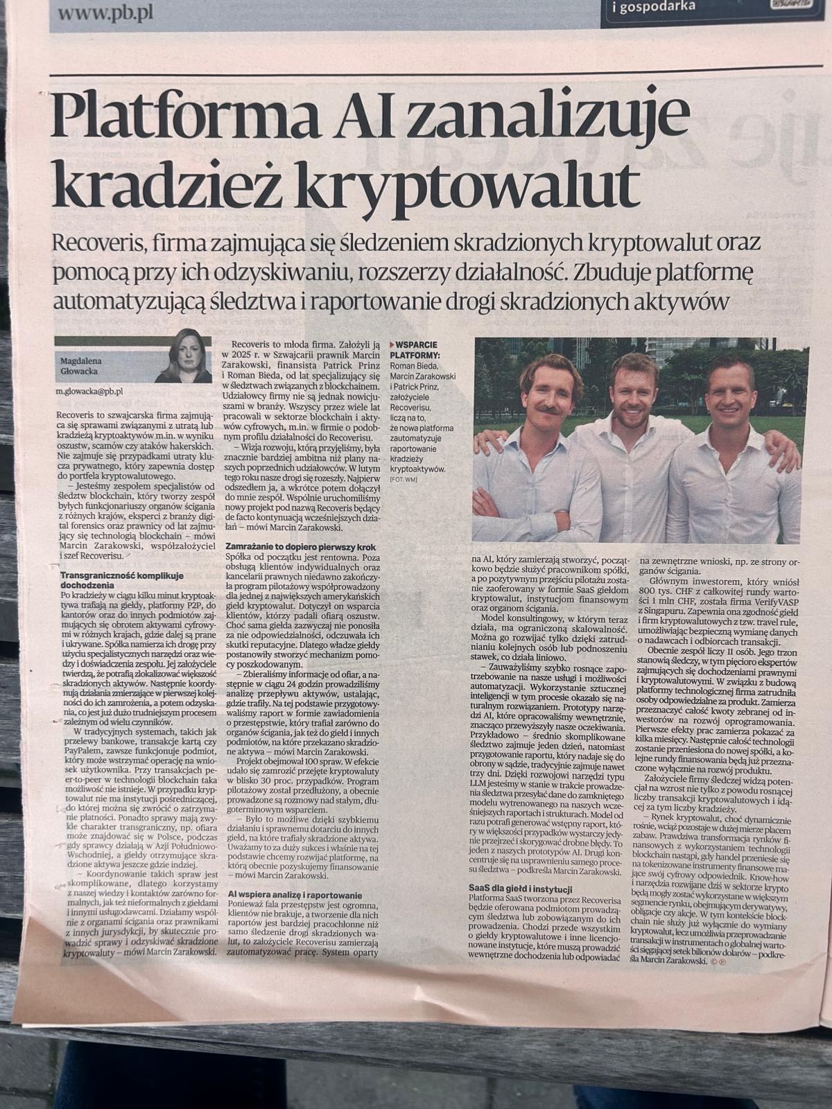 Recoveris: The Venture Leader Fintech tracing investigations and recovery for digital assets (venturelab.swiss)
